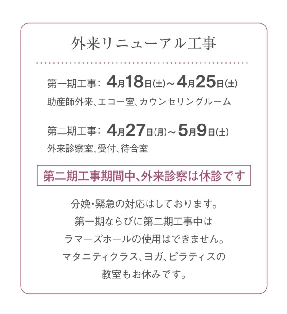 外来リニューアル工事についてのお知らせです。